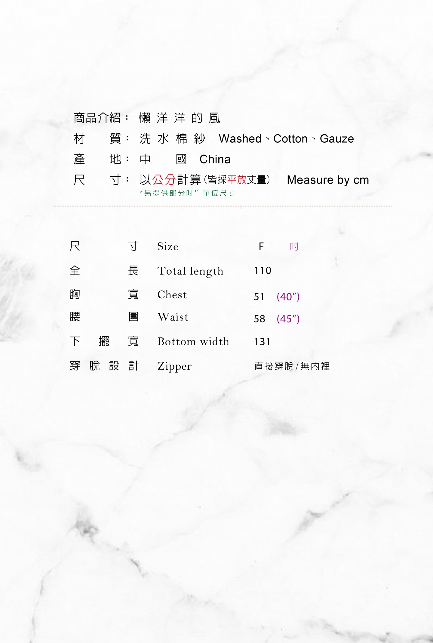 ◎模特兒身高體重參考 165cm / 57kg