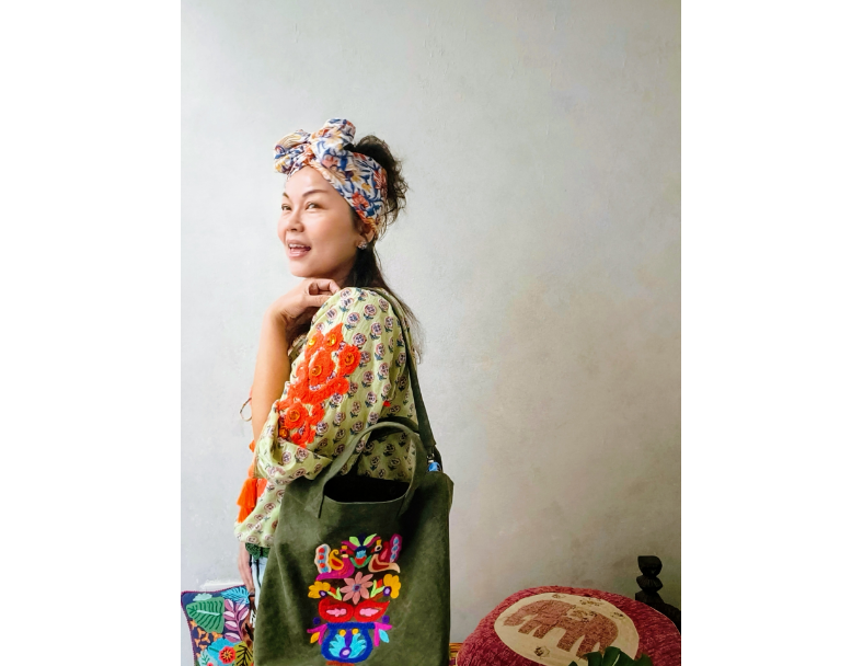 Africa super wax fabrics + Art emboridery motif 非洲蠟染布毛繡Tote包