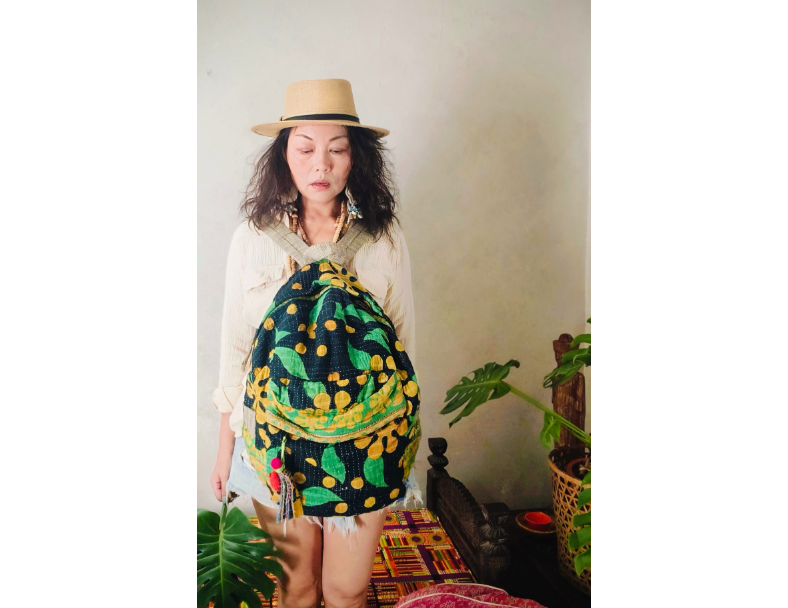 老甘達拼布背包 單款單件設計 古董布歷史痕跡 請慎拍