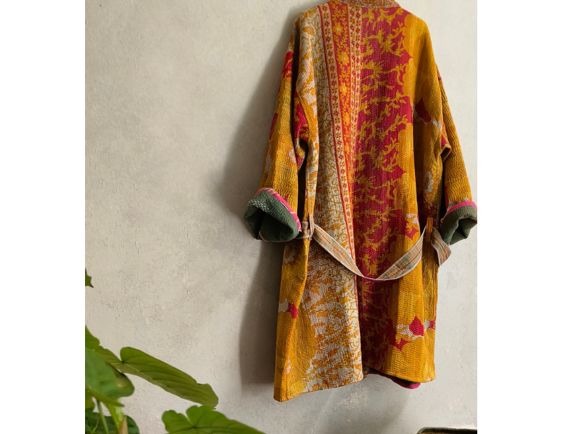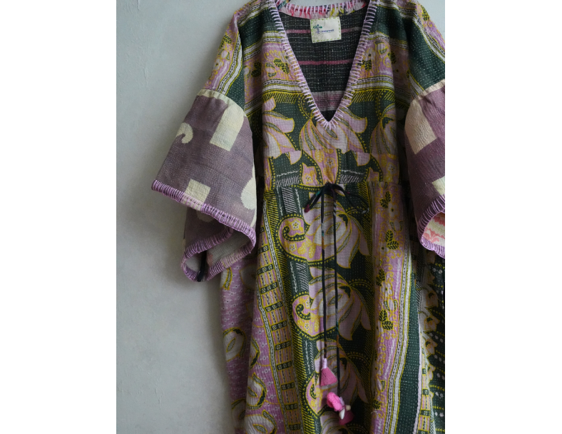 Kantha 老甘達古布新設計 寬版重量立體裁版 手鉤流蘇綁帶 單款單件